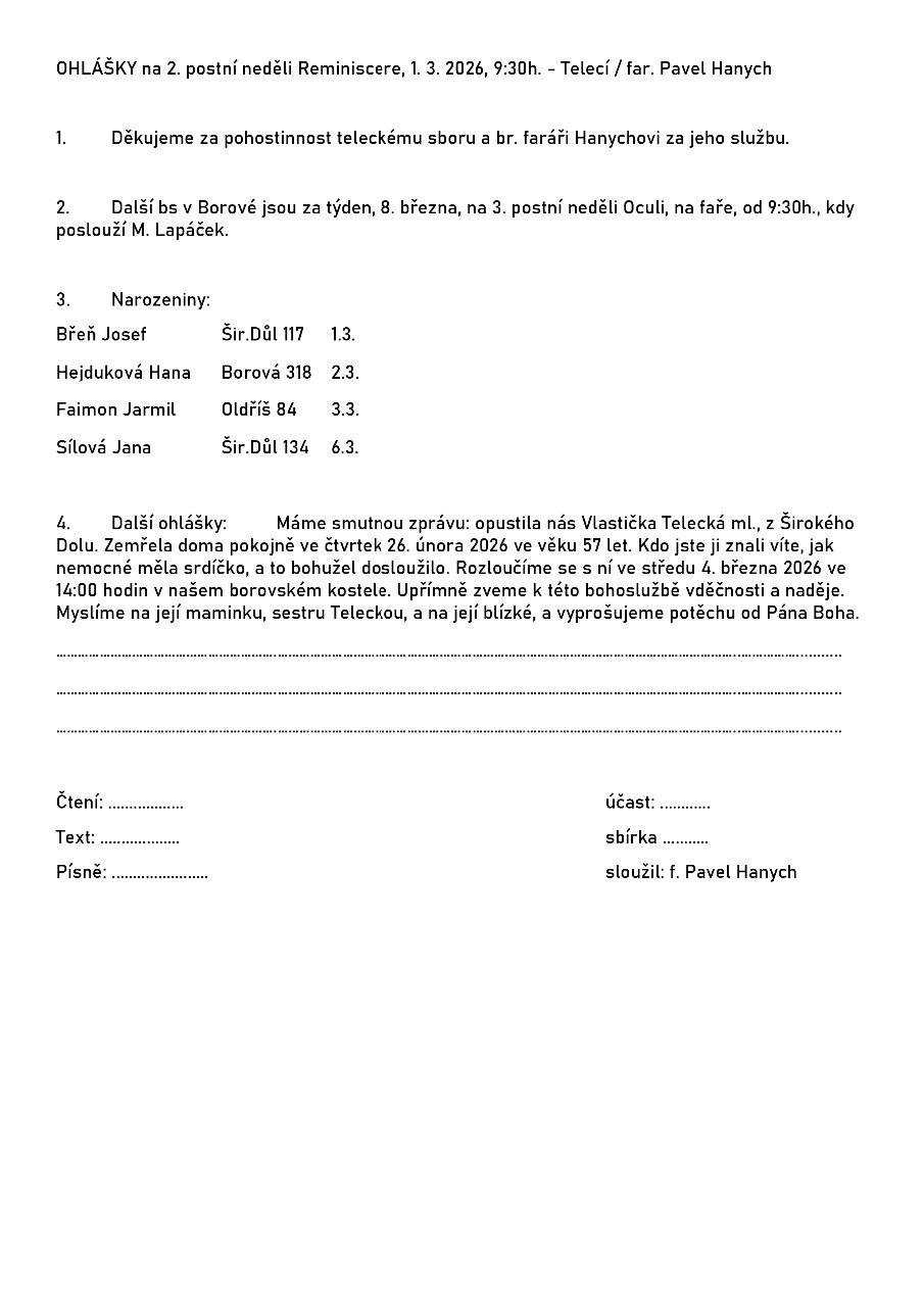 pozvání na další naše bohoslužby